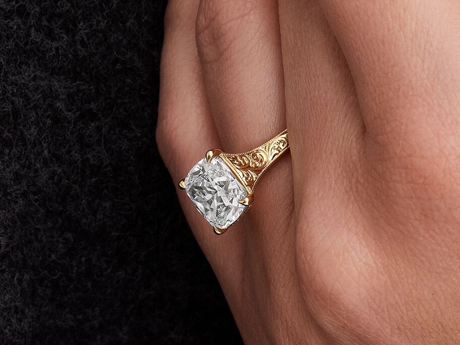 Shown on our Founder's Collection Wide Band Cushion Solitaire Engagement Ring,